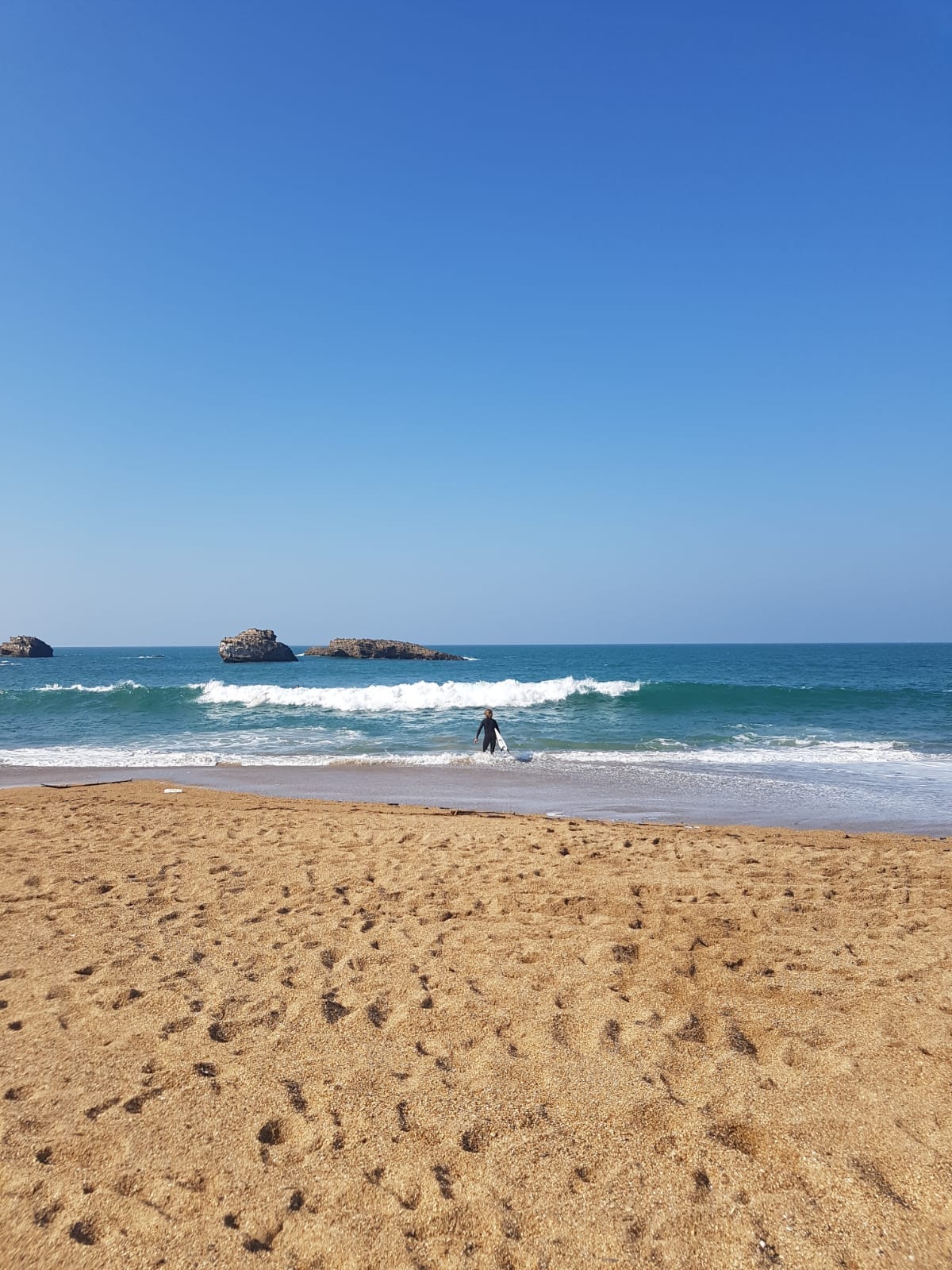 I sit myself down. Beyond the reach of the sea's salty breath. It foams at the mouth and hasn't cleaned its teeth for days. It smiles furiously at me as I bring a small camera to my squinting eye. In the little window that displays the scene I am groping to capture, life plays out with uncommon artfulness. Don, my dear companion, my Virgil leading me through the sun-kissed inferno of appearances coating the southwest of France as Winter greets Spring, steps towards the sparkling blue with more heroism than the naked eye can discern. The camera's eye modulates how much light this moment may be exposed to and deploys heavy shadows where the hero and his surfboard entangle themselves between sun and sea. I have a need for light, but how much light am I willing to expose myself to? Will I accept what that light shines on me in the same way I run to what that light shines on the objects of my desires? And when I see the light that draws me out will I try to trap it in the darkness of my clenched fists or will I greet it with an open palm? For a time I watch Don. He steps above the waves, sometimes momentarily, sometimes for a series of moments, and sometimes he misses the beat altogether — never steps above at all. Always though, he looks back to shore to see if I am watching and to see who else is watching. What the camera lens does not say, but the squinting eye distinguishes as plainly as black contrasts white, is that in the thick of the waves the hero feels exposed to the whole world. Maybe no one but me is watching him, but that isn't how it feels — not when a disobedient tuft of wave jerks the board out from beneath the all-mastering feet, unrooting the hero. In the most selfish kind of solidarity, I leave my litter of possessions on the beach — a towel, a book, a pen, a notebook, the camera (eyelid now shut) — and feel the sand change in firmness as I get closer to the monster's jaws where Don dances with hope. Over my shoulder, the distant rumbling of petanque players saunters down the cliffs and I can distinctly imagine the old-aged hollering and whooping as one metal ball thunders into another, fizzing it out of the arena forever. Now just in front of me, the waves cheer and clap with the same kind of glee I just imagined. Two of them converge on Don's hitherto untroubled board and the applause drowns out the plop of the hero's sudden submergence. How can they find their way who have never faced the need to alchemise land and water? The plage and its sea collude in a fiendish plot. Lured to the place where, together, they are most potent I find out my folly too late. Up to my waist in the restorative blue I turn to inspect the aspect of the shore as one might look at Earth from the moon. Quickly the tide empties until there is only a small puddle splashing about my ankles. I have been stripped of something, I stand naked in front of the beach, exposed to all and sundry. Checking to find the source of this moment of shame, I partake of the feeling of horror all earthlings experience in the face of certain death. The shallow water and the sand scurries and sinks across my feet and looming overhead is a mass of the sea's great heft, oblivious to the morsel it is about to consume. Shock opens the mouth wide. Very wide. Wide enough to permit a volume of water that isn't enough to drown a person but enough to make a person wonder if drowning might be a more pleasurable option. It's also enough water to knock a person off their stable footing. And this is where the waves can have their play. I flip onto my back in an instant, not that I know it, having my tummy tickled by a counter current at the same time. Underwater, the push and the pull of all these excitable forces do not leave me stretched out how I expect them to, but rather they intimidate me into a foetal ball of protection — they return me to a childlike state. By and by, the sea vomits me out. It may be less than a minute, or it may be a lifetime of uncontrollable rolling, before I regain my feet unsteadily and crawl back to the safety of the shore. This time I am glad. Glad for the ephemera. Glad to know the sea only enough to know its inexplicability. I am glad to witness that to know things as they are requires exposure to a painful, and inhuman, degree. Above all, I'm glad to know that awe is the thrill of finding myself exposed to the parts of reality that are resistant to my thinking. What have they grasped whose thoughts fit smally in the dark of their clutched fingers? To get here, I have walked so far believing myself to be mired in the most unnavigable slough, far below the smooth pavement of my peers. But this has never been so. This was a single photographic exposure I took to be in a condition of living and it demented me, shouldering me out from my own instant. The pause in the symphony is not the absence of sound, nor merely a precursor to what comes next — it too is its own kind of voicing. The exposure, the pause, the immersion — a million of these aren't enough. Like a cheese sandwich, like a kiss, these are endlessly recitable moments that never get boring. Feeling dry, soft sand beneath my feet once more, the terror of the sea begins its slow dissipation from my body. A pinprick of colour dares to surface on my pale cheeks. The camera only shakes lightly in time with the aftershock of my trembling hands. There isn't time to notice these things before I am conversing with my fellow earthling: "Did you see me out there? We came at the wrong time of day for the best waves. Oh well, time for a late lunch I think — fancy a cheese sandwich or something?" asked Don.